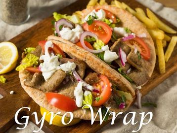 Beef Gyro with lettuce, tomato, onion, special gyro sauce