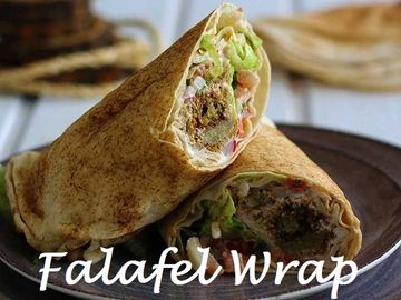 Falafel wrap with lettuce, tomato, pickles, secret tahini sauce, mild or spicy